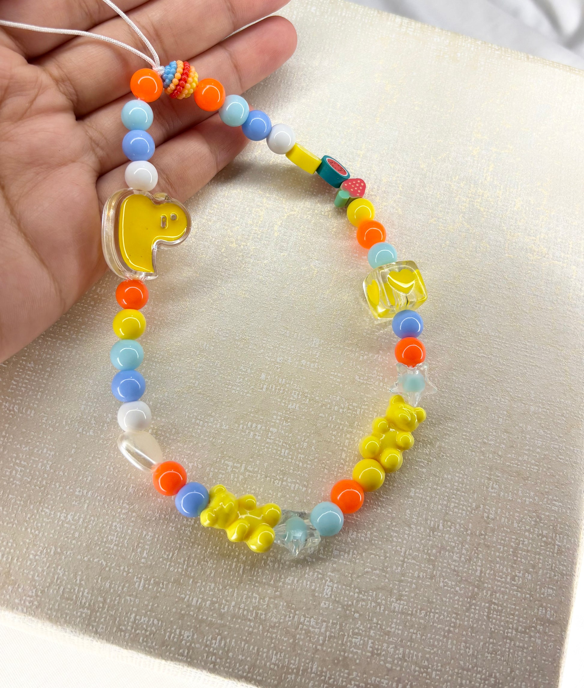 Add a splash of character and convenience to your phone (or wrist) with this charm. Featuring cheerful beads and an iconic character charm, it can attach to your phone, bag, or be worn as a playful bracelet—making your accessories instantly more splendor and expressive.
