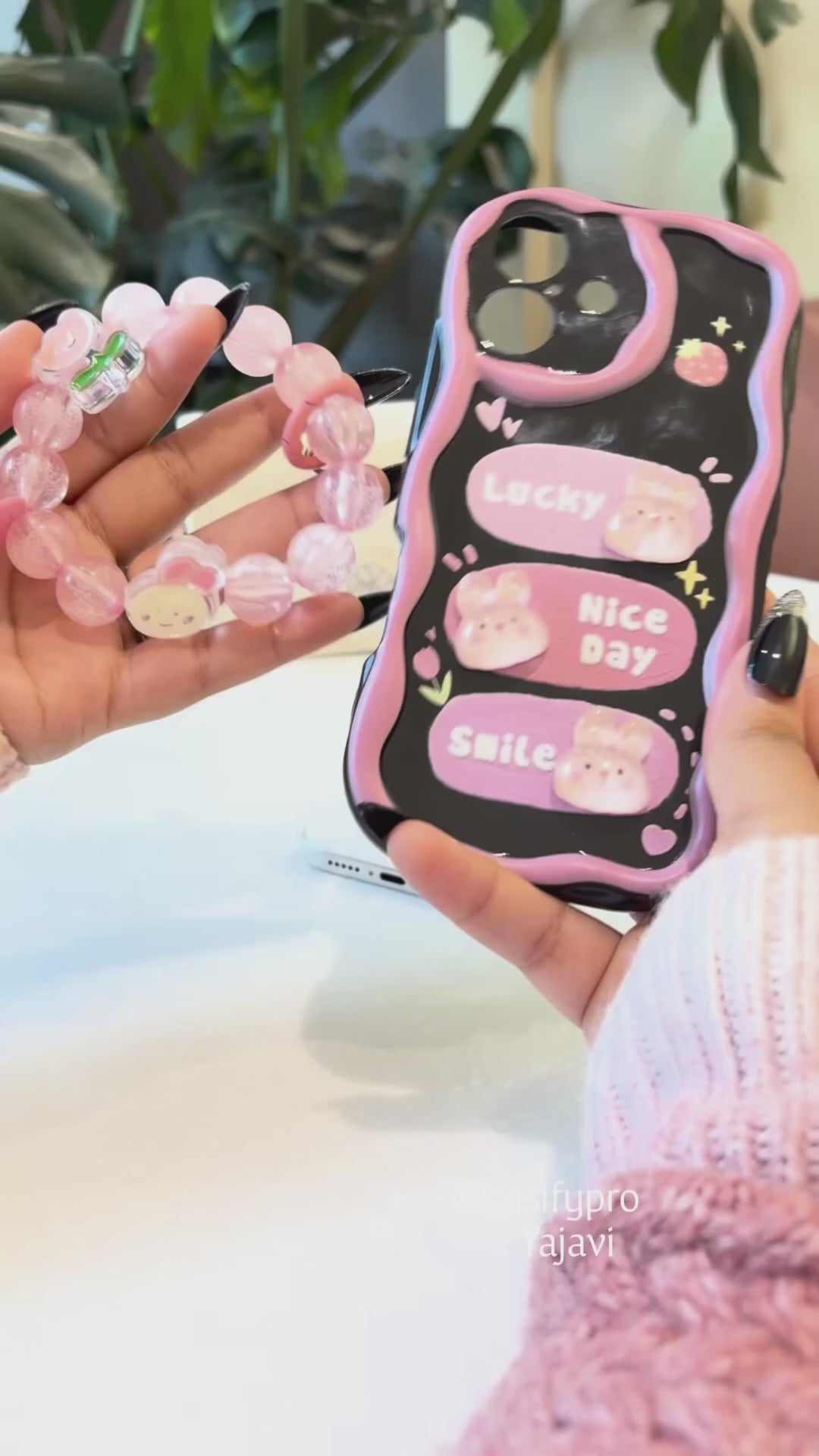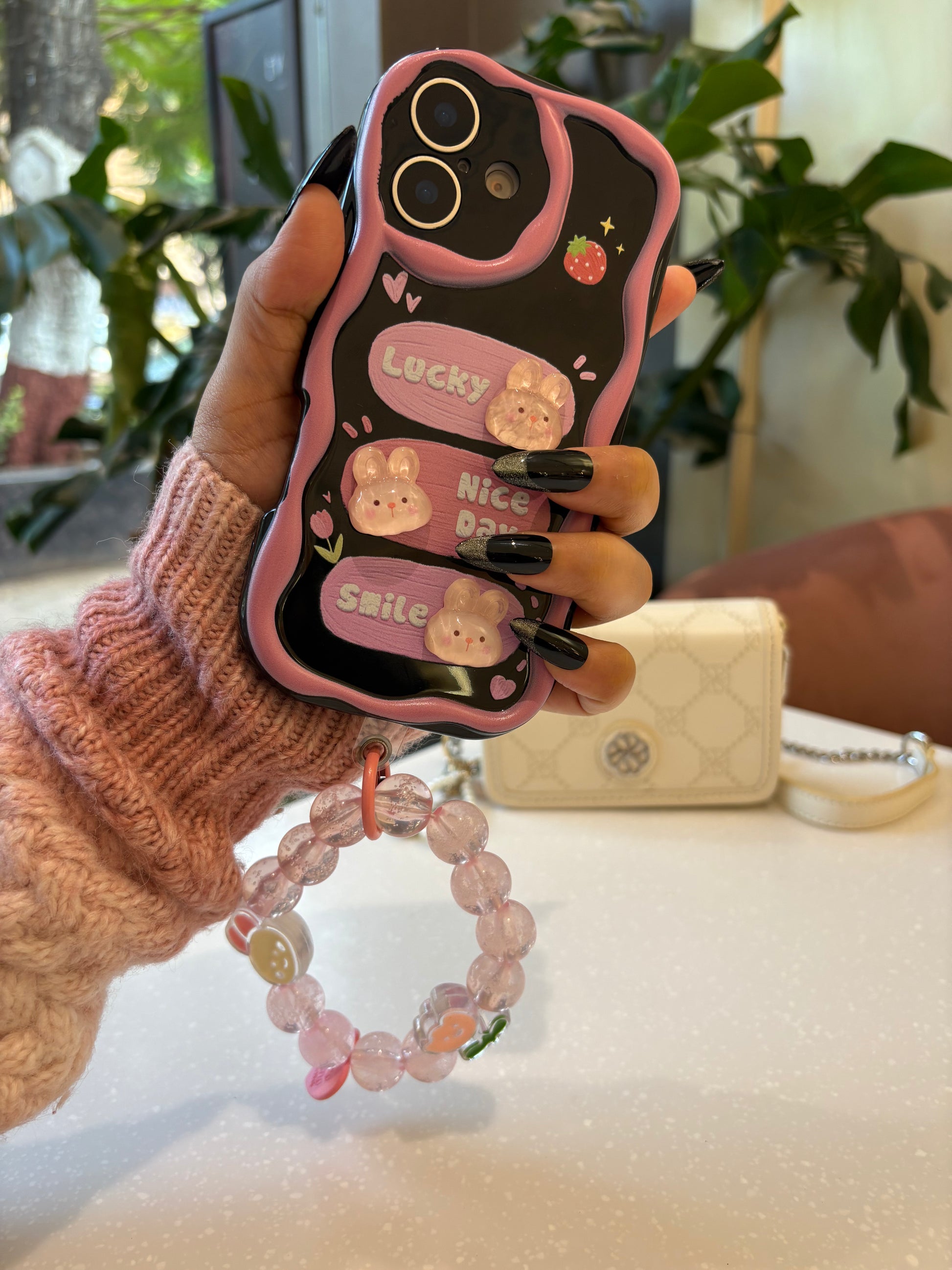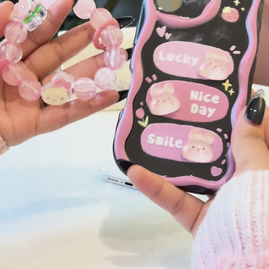 The Cute Bunny Charm Phone Case offers a delightful blend of playful design and everyday protection. Featuring adorable 3D bunny accents with cheerful text details, this case adds a cute and uplifting touch to your phone. The soft pastel detailing and wavy border enhance its aesthetic appeal, while the detachable beaded wrist strap adds both charm and convenience. Made from durable materials, this case provides reliable protection against everyday drops, bumps, and scratches while keeping your phone stylish and easy to carry. The Cute Bunny Charm Phone Case combines fun, fashion, and functionality for daily use.