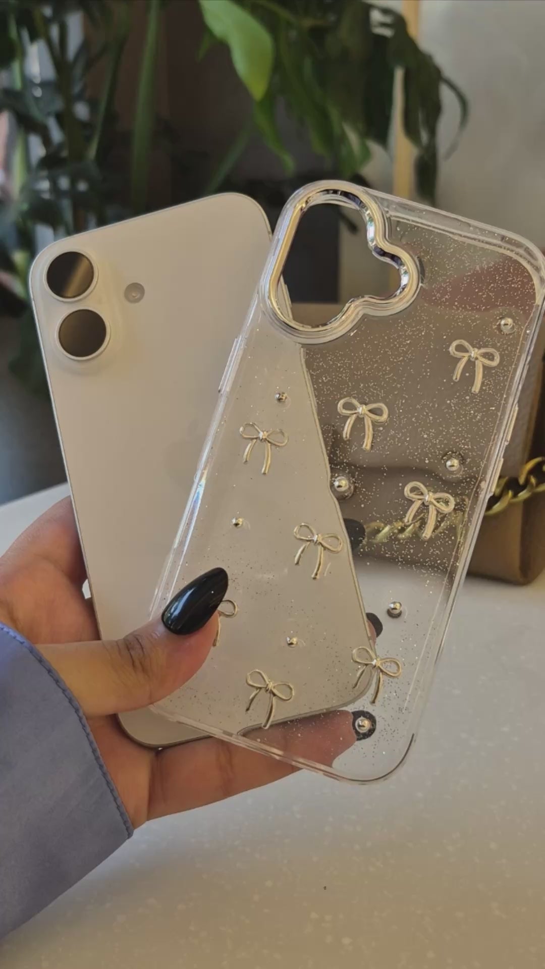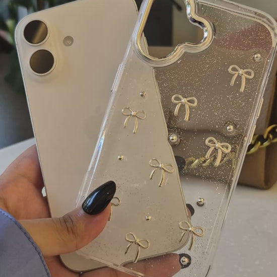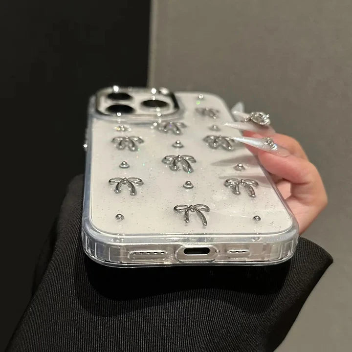 Transparent Glitter Bow iPhone Case – Cute & Protective